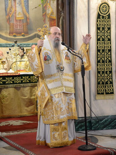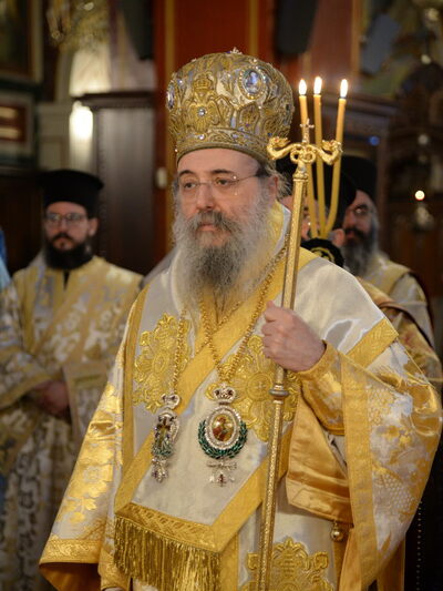 Ἀνέπεμψε αἶνον στὸν ἐν Τριάδι προσκυνούμενον Θεὸν ἡμῶν, ἐξέφρασε τὴν εὐχαριστίαν πρὸς τὸ πάνσεπτον πρόσωπον τῆς Ὑπεραγίας Θεοτόκου, πρὸς τὸν Ἀπόστολον Ἀνδρέαν, τὸν Ἅγιον Ἰωάννην τὸν Χρυσόστομον, τὸν Ἱεράρχην των Μυρέων Νικόλαον τὸν θαυματουργόν, τὸν Μεγαλομάρτυρα Μηνᾶ καὶ πάντας τοὺς Ἁγίους.