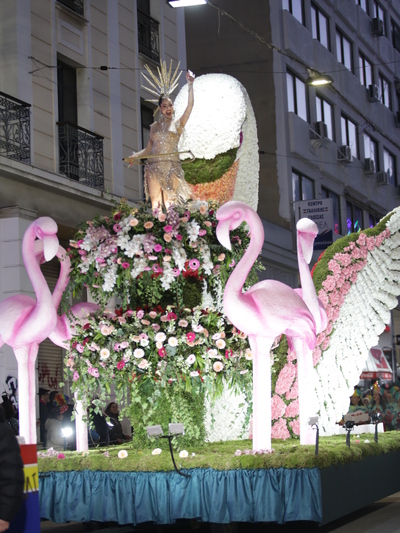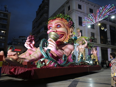 Η παρέλαση εξελίσσεται κατά μήκος της οδού Κορίνθου και κορυφώνεται στην Πλατεία Γεωργίου Α΄, όπου οι φωτισμοί και η ένταση της συμμετοχής προσδίδουν ξεχωριστή λάμψη στη μεγαλύτερη καρναβαλική νύχτα της χρονιάς.