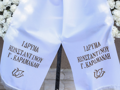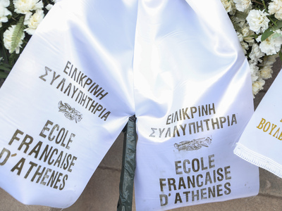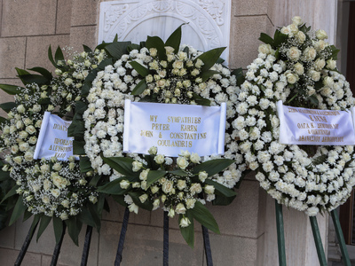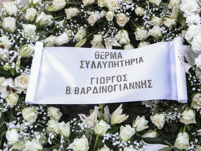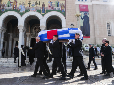 Το φέρετρο είναι καλυμμένο με τις σημαίες της Ελλάδας και της Γαλλίας, τιμώντας τη στενή της σύνδεση με τις δύο χώρες. Τον επικήδειο λόγο θα εκφωνήσει ο πρωθυπουργός Κυριάκος Μητσοτάκης.