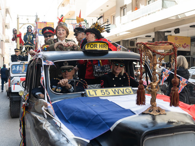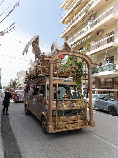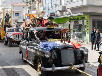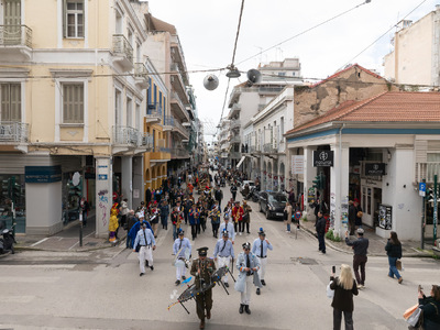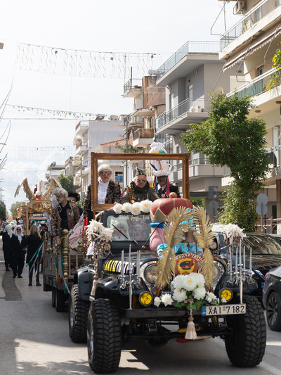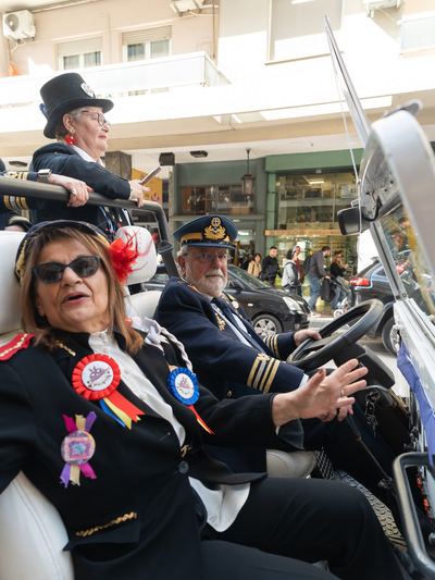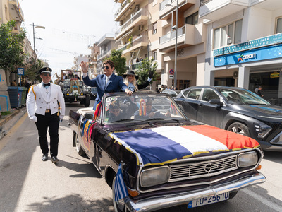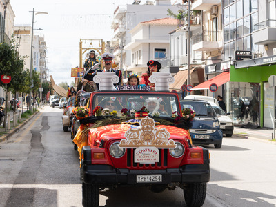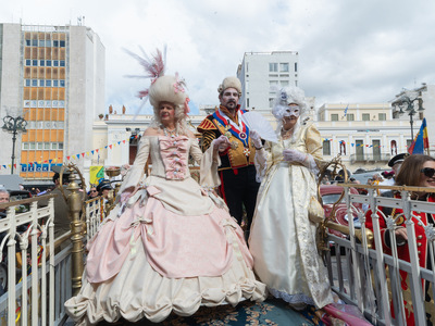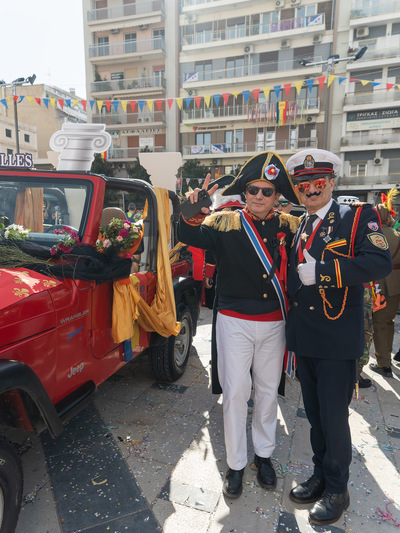 Έντονο καρναβαλικό χρώμα, σάτιρα και πλατιά χαμόγελα σκόρπισαν με την παρέλασή τους οι Στρατηγοί και Πρέσβεις του Πατρινού Καρναβαλιού που ξενάγησαν τη Μαρία Αντουανέτα, τον Λουδοβίκο, τον Μακρόν, την Βrigitte Patras και την πολυάριθμη συνοδεία τους στην καρναβαλική πρωτεύουσα. Η εντυπωσιακή παρέλαση των «Στρατηγών του Πατρινού Καρναβαλιού» που πεζοί με τις εξαιρετικές στολές τους αλλά και με τα εμπνευσμένα στολισμένα οχήματα-λιμουζίνες τους, έδωσαν καρναβαλική λάμψη και σατιρική χροιά στο κέντρο της πόλης, κατέληξε στο κέντρο της πλατείας Γεωργίου Α΄.