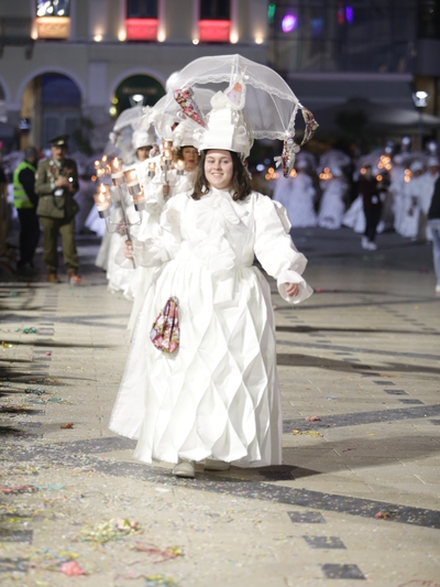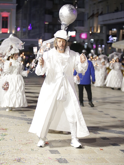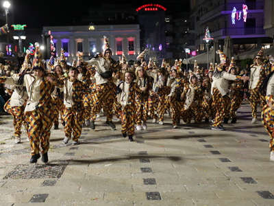 Χιλιάδες πολίτες και επισκέπτες έχουν κατακλύσει τα πεζοδρόμια και τα μπαλκόνια της διαδρομής, συνθέτοντας ένα εντυπωσιακό σκηνικό γεμάτο ρυθμό, φώτα και ασταμάτητο κέφι, επιβεβαιώνοντας για ακόμη μία χρονιά τη δυναμική και τη μοναδική ατμόσφαιρα της νυχτερινής παρέλασης.