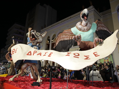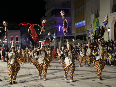 Περισσότεροι από 50.000 καρναβαλιστές, ενταγμένοι σε 190 πληρώματα, έχουν ξεχυθεί στους δρόμους, παρουσιάζοντας πρωτότυπες, καλλιτεχνικές και σατιρικές εμφανίσεις που κερδίζουν τα βλέμματα και το χειροκρότημα του κόσμου στη νυχτερινή ποδαράτη παρέλαση του Πατρινού Καρναβαλιού 2026.
