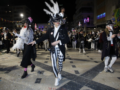 Απόψε, η καρδιά της Πάτρας ζει στους ρυθμούς του Πατρινού Καρναβαλιού 2026 καθώς η νυχτερινή ποδαράτη γέμισε το κέντρο με φως, μουσική και εορταστική διάθεση.
