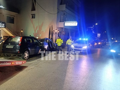 Δύο αυτοκίνητα συγκρούστηκαν με σφοδρότητα, με αποτέλεσμα το ένα όχημα να ανέβει στο πεζοδρόμιο, να ξηλώσει την πινακίδα επιχείρησης και να ακινητοποιηθεί λίγα μέτρα πιο πέρα. Στο σημείο έσπευσαν άμεσα δυνάμεις της Αστυνομίας και ασθενοφόρα του ΕΚΑΒ.