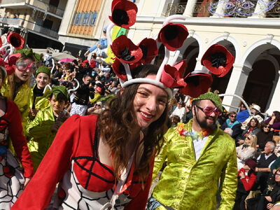 Η παρέλαση ξεχώρισε για τη φαντασία, τη σατιρική διάθεση και την καλλιτεχνική δημιουργικότητα των συμμετεχόντων, οι οποίοι με ευρηματικές στολές και δυναμική παρουσία δίνουν τον παλμό της γιορτής. Μουσική, χορός και θεατρικά δρώμενα συνέθεσαν μια ατμόσφαιρα ενθουσιασμού, παρασύροντας θεατές και επισκέπτες σε ένα ξέφρενο γλέντι.