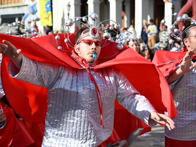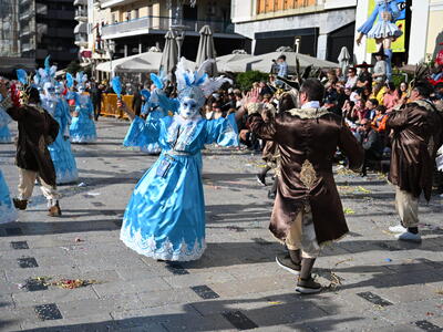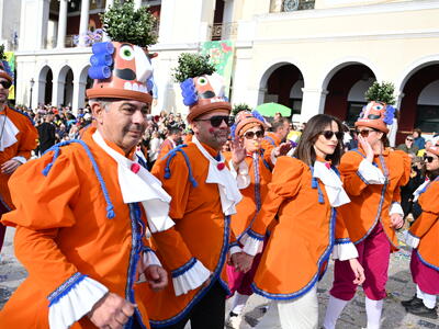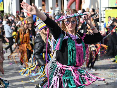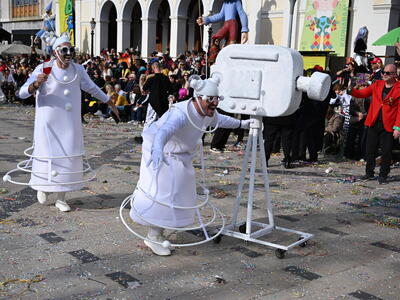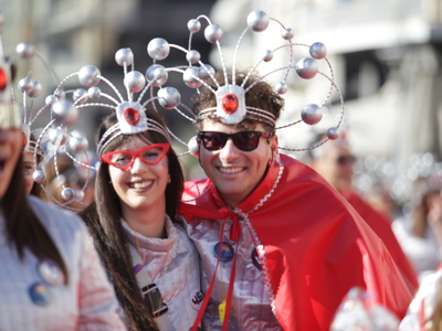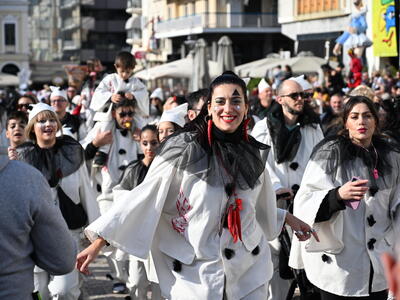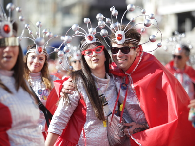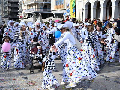Χιλιάδες συμμετέχοντες, οργανωμένοι σε δεκάδες πληρώματα, παρελαύνουν στο κέντρο της πόλης, συνοδεία αρμάτων και μουσικών επιλογών που ανεβάζουν τον ρυθμό. Το κοινό ανταποκρίνεται με ενθουσιασμό, μετατρέποντας κάθε γωνιά σε μια σκηνή χαράς και κεφιού.
