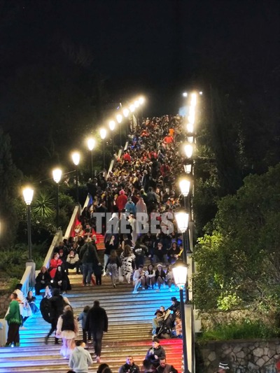 Μετά το τέλος της μεγάλης παρέλασης, οι σκάλες Αγίου Νικολάου γέμισαν με καρναβαλιστές και επισκέπτες, δημιουργώντας μια εικόνα γεμάτη χρώμα και ζωντάνια.