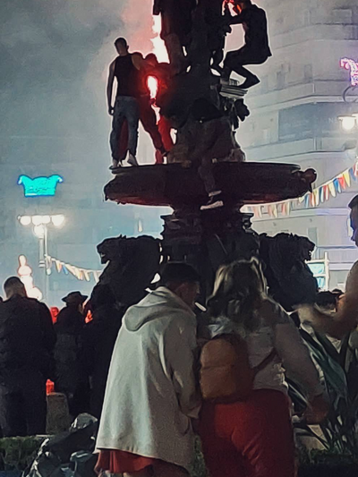 Την ίδια ώρα, τα συντριβάνια της πλατείας Γεωργίου μετατράπηκαν σε σημείο… επίδειξης, καθώς δεκάδες άτομα σκαρφάλωναν πάνω τους, δημιουργώντας εικόνες συνωστισμού και αυξάνοντας τον κίνδυνο ατυχήματος, αλλά και πρόκλησης ζημιών στις εγκαταστάσεις.