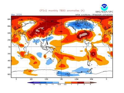 Παρά τις παροδικές ψυχρές εξάρσεις της Πέμπτης 26/2 έως το Σάββατο 28/2, τα προγνωστικά δείχνουν ότι ο μήνας Μάρτιος αναμένεται συνολικά πιο θερμός από τα κανονικά επίπεδα, χωρίς σημαντικές αποκλίσεις.