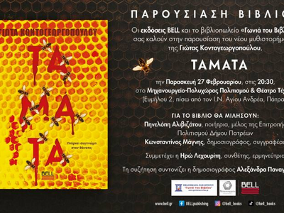 Το νέο αστυνομικό θρίλερ της διευθύντριας σύνταξης του thebest.gr Γιώτας Κοντογεωργοπούλου, «ΤΑΜΑΤΑ», παρουσιάζεται στην Πάτρα, λίγες μόλις ημέρες μετά την κυκλοφορία του.
