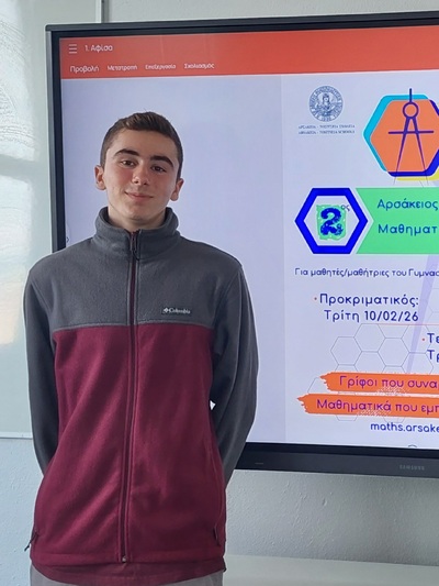 Οι Διευθυντές του Αρσακείου Λυκείου και Αρσακείου Γυμνασίου Πατρών καθώς και οι σύλλογοι καθηγητών των σχολείων εκφράζουν τα θερμά συγχαρητήρια στη μαθήτρια της Β΄ Γυμνασίου Κοντορίνη Αγλαΐα-Ελένη και στους μαθητές της Γ΄ Γυμνασίου Κατριβέση Μάξιμο και της Ά Λυκείου Κοντορίνη Κωνσταντίνο-Παλαιολόγο για την επιτυχία τους στο διαγωνισμό της Μαθηματικής Εταιρείας «Ο Ευκλείδης», ο οποίος πραγματοποιήθηκε στις 17 Ιανουαρίου 2026.