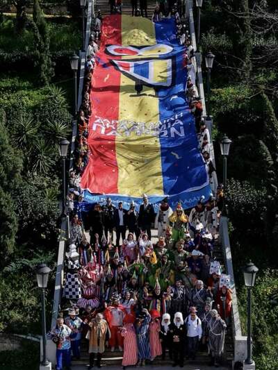 Στη συνέχεια, οι προσκεκλημένοι επισκέφθηκαν το Ρωμαϊκό Ωδείο της Πάτρας, απολαμβάνοντας μία σύντομη ξενάγηση και έπειτα συμμετείχαν στην επίσημη φωτογράφιση των μελών της Καρναβαλικής Ακαδημίας στις σκάλες της οδού Αγίου Νικολάου, σε μία συμβολική στιγμή ενότητας και φιλίας.