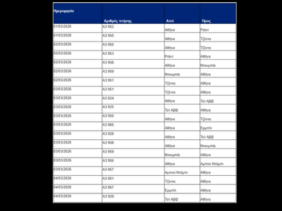 Επιπλέον, η AEGEAN ενημερώνει ότι, με στόχο τη διευκόλυνση των επιβατών που διαθέτουν εισιτήρια από και προς το Τελ Αβίβ, το Ερμπίλ, τη Βαγδάτη, τη Βηρυτό, το Αμπού Ντάμπι, το Ντουμπάι και επιπλέον το Ριάντ και τη Τζέντα για πτήσεις με προγραμματισμένη αναχώρηση έως και τις 11 Μαρτίου 2026, παρέχει, εφόσον το επιθυμούν, τη δυνατότητα τροποποίησης των πτήσεων είτε με δωρεάν επανέκδοση και αλλαγή των εισιτηρίων, χωρίς επιπλέον κόστος, για νέα ταξίδια με ημερομηνία αναχώρησης έως και τις 31 Μαρτίου 2026, είτε με ακύρωση της κράτησης και έκδοση credit voucher για μελλοντική χρήση.