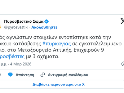 Το κτίριο στο οποίο ξέσπασε φωτιά ήταν εγκαταλελειμμένο και για την κατάσβεση κινητοποιήθηκαν εννέα πυροσβέστες με τρία οχήματα