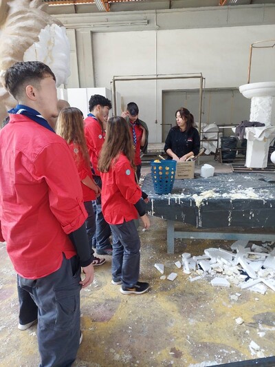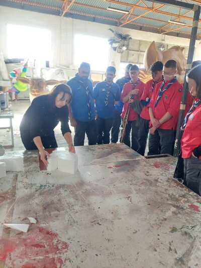 Είδαν από κοντά την πορεία εργασίας για την προετοιμασία των αρμάτων του Καρναβαλιού, έμαθαν για τον τρόπο κατασκευής του άνθινου άρματος, για το υλικό που απαιτείται (πολυεστέρας) και για τον τρόπο κατασκευής για τους μπάστακες ο οποίος διαφοροποιείται από αυτόν των αρμάτων αφού οι μπάστακες πρέπει να είναι ιδιαίτερα ανθεκτικοί στη φθορά και προορίζονται να διακοσμούν εξωτερικά σημεία της πόλης μας.
