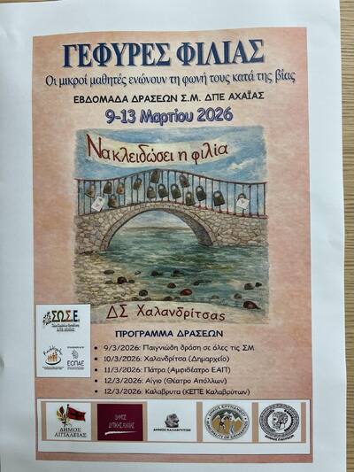 Τίτλος της «Γέφυρες Φιλίας: Οι μικροί μαθητές και μαθήτριες της Αχαϊας ενώνουν τις φωνές τους κατά της βίας»