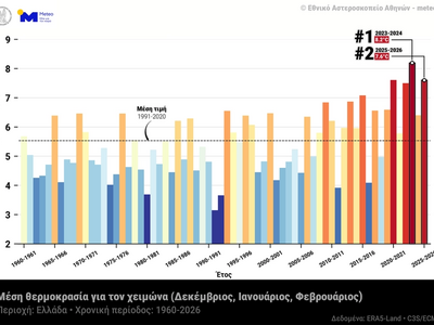 Παράλληλα, ο χειμώνας 2025–2026 ήταν ένας από τους πιο υγρούς χειμώνες στα χρονικά των καταγραφών στην Ελλάδα, ενώ η χιονοκάλυψη κινήθηκε σε πολύ χαμηλά επίπεδα σε σχέση με τις κλιματικές τιμές.