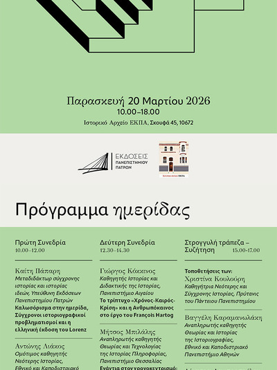 Αναλυτικές πληροφορίες μπορείτε να εντοπίσετε στον παρακάτω σύνδεσμο: https://www.upatras.gr/dyo-imerides-gia-tin-istoriografia/