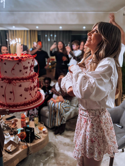 Τις ιδιαίτερες αυτές στιγμές μοιράστηκε με τους ακολούθους της μέσα από τον προσωπικό της λογαριασμό στο Instagram. Στις φωτογραφίες, η ηθοποιός φαίνεται ιδιαίτερα χαρούμενη αλλά και συγκινημένη, ειδικά τη στιγμή που σβήνει τα κεράκια της. Στο πλευρό της ήταν συνεχώς ο σύντροφός της Μπρούνο Τσερέλα ο οποίος είναι συνεχώς χαμογελαστός δείχνοντας να απολαμβάνει κάθε λεπτό. Το ίδιο ευδιάθετοι δείχνουν και οι υπόλοιποι καλεσμένοι ανάμεσα στους οποίους διακρίνονται η Σίσσυ Χρηστίδου, η Χριστίνα Κοντοβά, η Λένα Δροσάκη, o Κωνσταντίνος Δέδες κ.ά.