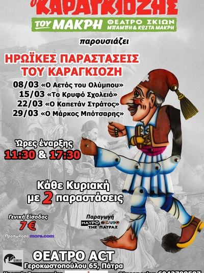Το Θεάτρο Σκιών " Ο Καραγκιόζης του Μακρή" παρουσιάζει έναν κύκλο ηρωικών παραστάσεων αφιερωμένων στον αγαπημένο λαϊκό ήρωα.