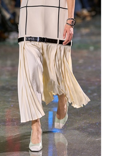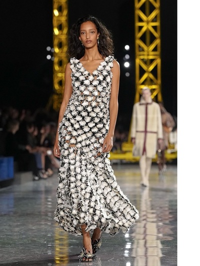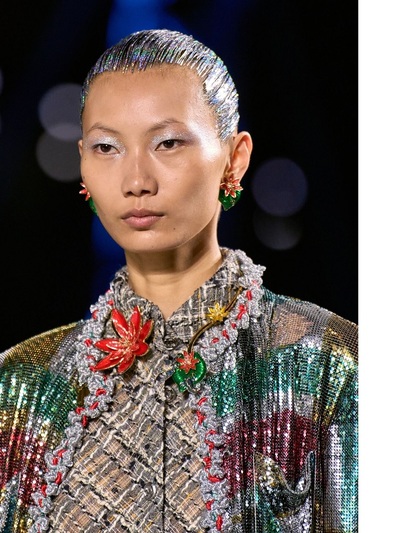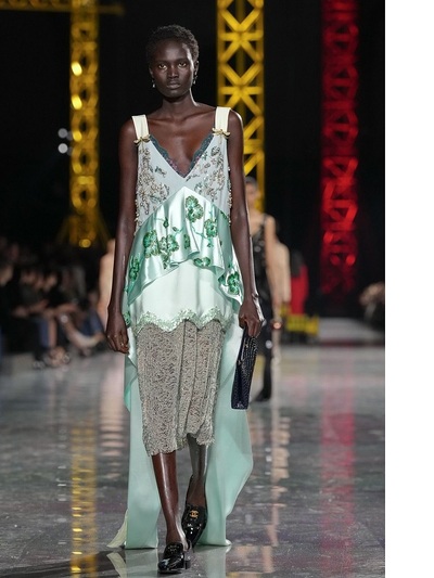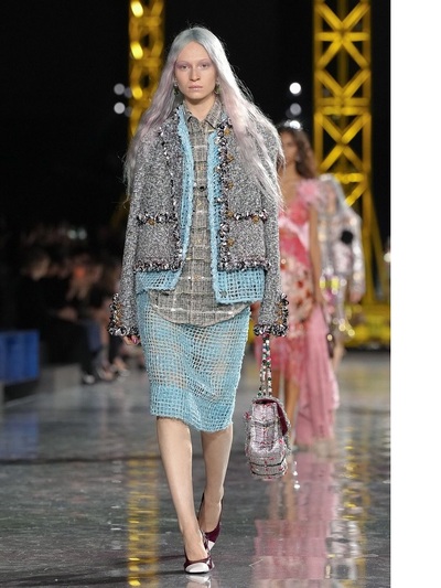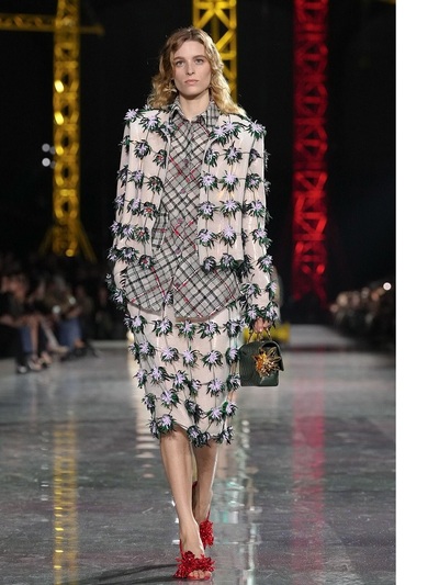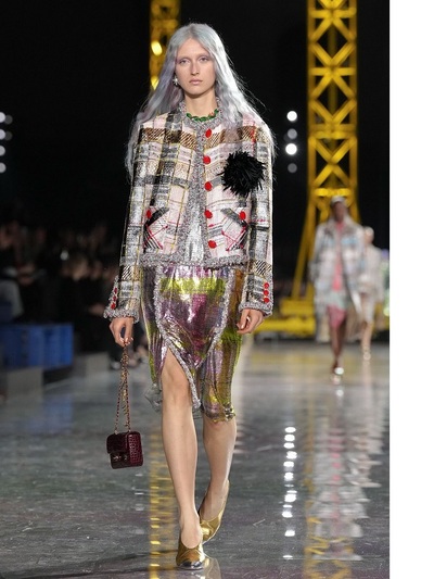 Τα διασημότερα περιοδικά υπογράμμισαν πως καταρχήν πάντρεψε το style της δεκαετίας του 1920 με την αισθητική της Gen Z. Είδαμε δηλαδή ρευστά φορέματα με χαμηλή μέση και σύγχρονα bombers που αντικατέστησαν τα σακάκια στα ταγιέρ. Eπιπλέον, το layering ήταν ακόμα πιο σύνθετο και απροσδόκητο, ενώ ο στολισμός των ρούχων ξεκάθαρα μαξιμαλιστικός. Τρισδιάστατα λουλούδια, μπλεγμένα κεντήματα, θεαματικά ξέφτια, γκλίτερ, χρωματιστά γυαλιά ηλίου, κοσμήματα από ρητίνη και πετράδια έκαναν την πασαρέλα πραγματική γιορτή.