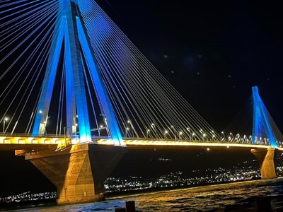 Φωταγωγημένη με τα χρώματα του Παναιτωλικού ήταν χθες (9/3) η Γέφυρα Ρίου-Αντιρρίου, στο πλαίσιο των δράσεων για τη συμπλήρωση 100 χρόνων από την ίδρυση του ιστορικού συλλόγου του Αγρινίου.