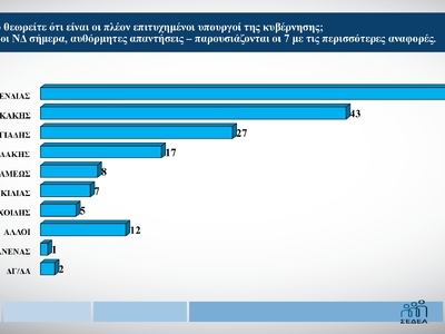 Ειδικότερα, ο Νίκος Δένδιας έρχεται πρώτος με 34%, αφήνοντας πίσω τον Κυριάκο Πιερρακάκη με 16%. Τρίτος βρίσκεται ο Άδωνις Γεωργιάδης με 8%.