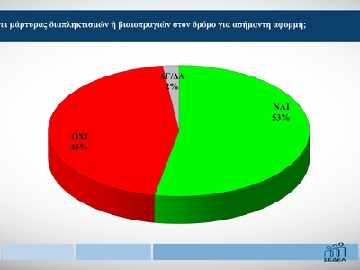 Τέλος, το 53% των ερωτηθέντων δηλώνει ότι έχει γίνει μάρτυρας διαπληκτισμών ή βιαιοπραγιών στον δρόμο για ασήμαντη αφορμή.