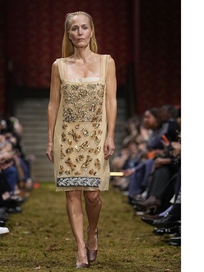 Η συμμετοχή διάσημων κυριών του θεάματος και του style στο show έκανε ταχύτατα το γύρω του κόσμου. Ανάμεσα στα μοντέλα περπάτησαν η 57χρονη Γκίλιαν Αντερσον, η 51χρονη Κλοέ Σεβινί και η 61χρονη Κρίστεν Μακ Μέναμι. Και οι τρεις, οι δυο ηθοποιοί και το super model με κοντά κορίστικα φορέματα, αντιπροσωπεύουν την ιδέα των ρούχων ως προέκταση της γενικότερης ανθρώπινης παρουσίας.