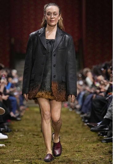 Sixties mini dresses, δερμάτινα πανωφόρια και παντελόνια, διάφανα τοπ με κρύσταλλα, γούνινα «τελειώματα», λιτά σακάκια με πουκάμισα συνέθεσαν ένα τοπίο αντιθέσεων. Σε αυτό είχαν περίοπτη θέση η ωριμότητα και τα διαφορετικά σώματα.
