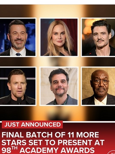 Στη σκηνή θα εμφανιστούν επίσης οι φετινοί υποψήφιοι Rose Byrne (για α' γυναικείο), Wagner Moura (για α' ανδρικό) και Delroy Lindo (για καλύτερο β' ανδρικό ρόλο), ο επί σειρά ετών οικοδεσπότης των βραβείων Jimmy Kimmel, καθώς και οι σταρ Pedro Pascal, Nicole Kidman, Channing Tatum και Sigourney Weaver.