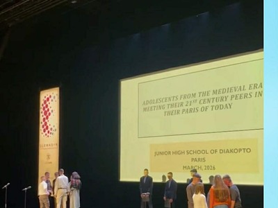Μετά την συμμετοχή του το 2025 στο Συνέδριο της Βενετίας, το Γυμνάσιο Διακοπτού συμμετείχε και φέτος στο 5ο Διεθνές Μαθητικό Συνέδριο της Elemasyn στο Sapere Aude του Παρισιού, με ένα δυνατό τρίγλωσσο θεατρικό δρώμενο αφιερωμένο στην 200 χρόνων ελληνογαλλική φιλία, στην παγκόσμια Τέχνη και στην Ειρήνη μεταξύ των λαών, που τόσο πολύ μοιάζει σήμερα να κινδυνεύει.