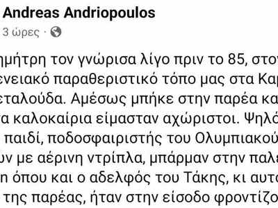 Ο Ανδρέας Ανδριόπουλος τον αποχαιρέτησε με ένα συγκινητικό κείμενο