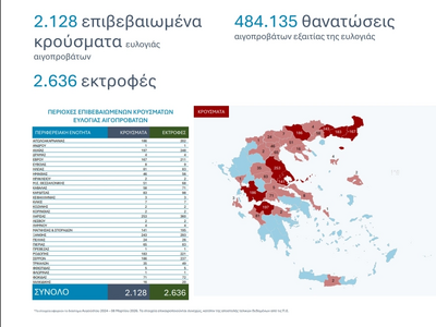 Σύμφωνα με τα συγκεντρωτικά στοιχεία που παρουσιάστηκαν, για το διάστημα από τον Αύγουστο του 2024 έως και τις 8 Μαρτίου 2026 έχουν καταγραφεί συνολικά 2.128 επιβεβαιωμένα κρούσματα, 2.636 εκτροφές και 484.135 θανατώσεις αιγοπροβάτων. Παράλληλα, για το διάστημα από 1 Ιανουαρίου έως 8 Μαρτίου 2026 καταγράφονται 103 κρούσματα, γεγονός που επιβεβαιώνει ότι, παρά τη σχετική χειμερινή ύφεση, δεν υπάρχει κανένα περιθώριο εφησυχασμού.