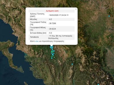 Σεισμός 4,2 Ρίχτερ σημειώθηκε αργά το απόγευμα της Δευτέρας με επίκεντρο τη Λεπτοκαρυά Θεσπρωτίας.