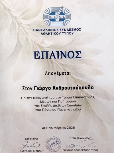 Το Βραβείο «Ανδρέας Κυριακόπουλος» στη δημοσιογραφική Ομάδα «gazzetta.gr» (Παναγιώτης Δαλαταριώφ, Φώτης Καρακούσης, Βασιλική Μπαρτζιώτη), για το ντοκιμαντέρ με τίτλο «Πέννυ Ρόγκα: Against All Odds», Ιστοσελίδα «gazzetta.gr». Την απονομή έκανε ο δημοσιογράφος και μέλος της Επιτροπής Δημοσιογραφικών Βραβείων ΠΣΑΤ Γιάννης Μαμουζέλος.
