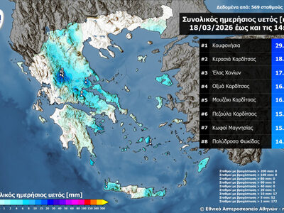 Πάνω από 20mm βροχής στα Κουφονήσια, άλλες 7 περιοχές στο επίκεντρο