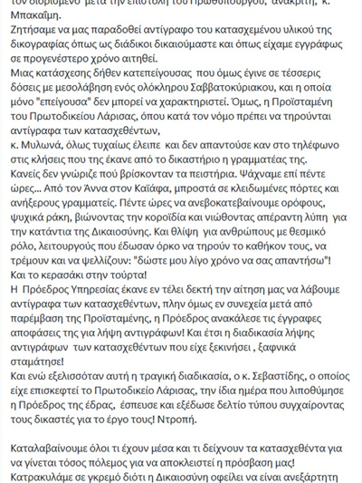 Πόση ντροπή! Είμαστε από το πρωί και μέχρι τώρα ώρα 20.30, πάνω από δέκα ώρες στο Δικαστικό Μέγαρο Λαρισας!