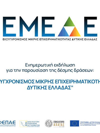 Ενημερωτική εκδήλωση με θέμα τη δέσμη δράσεων «Εκσυγχρονισμός Μικρής Επιχειρηματικότητας Δυτικής Ελλάδας 2025» θα πραγματοποιηθεί τη Δευτέρα 23 Μαρτίου 2026, στις 19:00, στην Πάτρα.