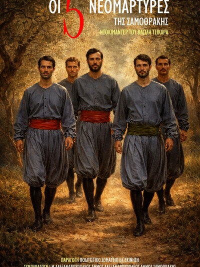 Το ντοκιμαντέρ με τίτλο «Οι Πέντε Νεομάρτυρες της Σαμοθράκης» αναδεικνύει την άγνωστη πτυχή των πέντε νεομαρτύρων (Γεώργιος, Μανουήλ, Θεόδωρος, Γεώργιος και Μιχαήλ) που μαρτύρησαν μετά την ιστορία, την επανάσταση και το ολοκαύτωμα του 1821 στο νησί.
