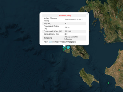 Σεισμός 4,2 Ρίχτερ καταγράφηκε πριν από λίγο κοντά στο Ληξούρι. Το επίκεντρο βρέθηκε 10 χιλιόμετρα δυτικά-βορειοδυτικά της πόλης, σε εστιακό βάθος 5 χιλιομέτρων.