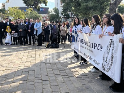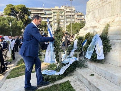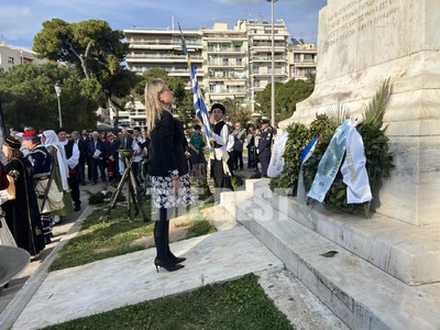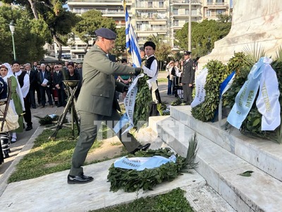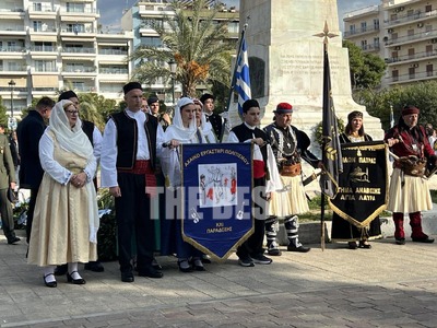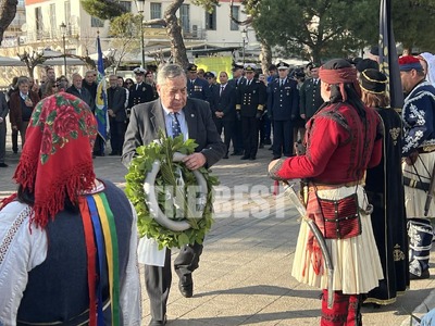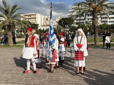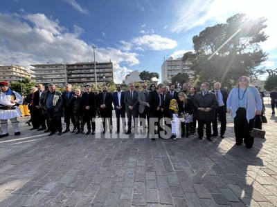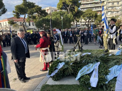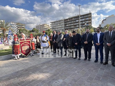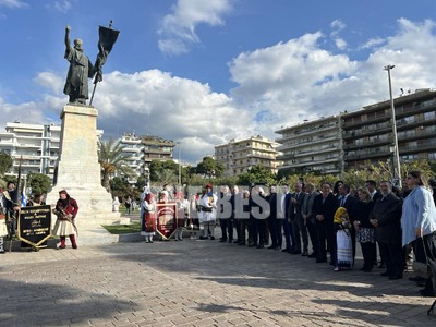 Η εκδήλωση ξεκίνησε με την άφιξη των δαφνοδρόμων από τη Μονή Αγίας Λαύρας Καλαβρύτων, ενώ ακολούθησε η κατάθεση στεφάνου και η επιμνημόσυνη δέηση. Τον πανηγυρικό της ημέρας εκφώνησε ο Διευθυντής του 1ου Δημοτικού Σχολείου Παραλίας Πατρών, Σταύρος Σταυρόπουλος.