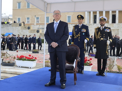 Η παρέλαση των Ενόπλων Δυνάμεων και των Σωμάτων Ασφαλείας, μπροστά από το Μνημείο Αγνώστου Στρατιώτη, για τον εορτασμό της εθνικής επετείου της 25ης Μαρτίου 1821 ξεκίνησε σήμερα, λίγο λεπτά μετά τις 11:00 π.μ. ενώπιον του Προέδρου της Ελληνικής Δημοκρατίας Κωνσταντίνου Τασούλα.