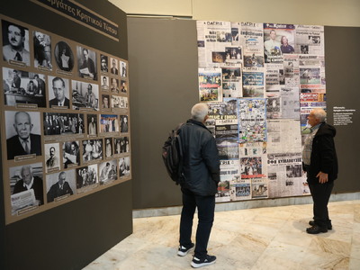 Η έκθεση περιλαμβάνει τεκμήρια και έντυπα του Μουσείου Τύπου της ΕΣΗΕΠΗΝ, το οποίο φέτος συμπληρώνει 70 χρόνιας προσφοράς, και σπάνιο αρχειακό υλικό που παραχώρησαν ευγενικά οι φορείς: Αρχείο της Βουλής των Ελλήνων, Βικελαία Δημοτική Βιβλιοθήκη Ηρακλείου, Ιστορικό Μουσείο Κρήτης, Ιστορικό Αρχείο Κρήτης, Μουσείο Νίκου Καζαντζάκη, αρχείο εφημερίδας «Πατρίς» Ηρακλείου, αρχείο εφημερίδας «Χανιώτικα Νέα», Λαογραφικό Μουσείο Άνω Βιάννου, Οργανισμός Πολιτισμού και Ανάπτυξης Ποταμιών «Η Γκουβερνιώτισσα».