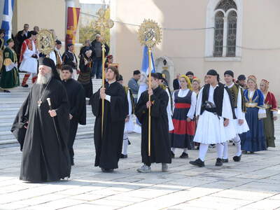 Οι εκδηλώσεις κορυφώθηκαν με Αρχιερατικό Συλλείτουργο στον Ιερό Ναό Αγίου Ανδρέου, παρουσία πλήθους πιστών και εκπροσώπων των τοπικών αρχών.