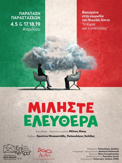 Το Επίκεντρο+ και η ANTARTS AMKE επιστρέφουν με την καυστική κωμωδία «ΜΙΛΗΣΤΕ ΕΛΕΥΘΕΡΑ» (βασισμένη στο έργο του Νικολάι Άλντο «Η κυρία και ο υπάλληλος») σε σκηνοθεσία Μίλτου Νίκα.