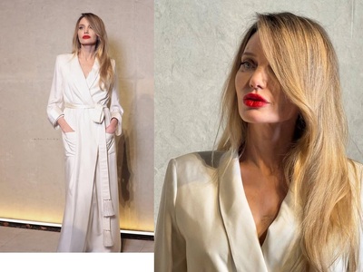 Συγκεκριμένα, επέλεξε ένα λευκό σατινέ wrap dress του label, με μακριά μανίκια και ζώνη ως πρότυπο αφαιρετικής και χαλαρής αισθητικής. Επιπλέον έτσι επισήμανε πως η υφή του σατέν μέσα από τις τάσεις lingerie και pyjama παραμένει στο προσκήνιο της μόδας. Η γυαλάδα του μεταξιού άλλωστε, πολλές φορές δεν χρειάζεται περισσότερες φιοριτούρες ή αποκαλυπτικά πατρόν για να χαρίσει πνοή πολυτέλειας σε ένα outfit.