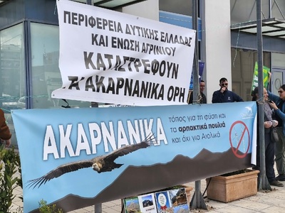 Παράσταση διαμαρτυρίας έξω από το κτίριο της Περιφέρειας Δυτικής Ελλάδας στην Πάτρα, πραγματοποίησαν το πρωί της Τρίτης 31/3/2026, μέλη της Ελληνικής Ορνιθολογικής Εταιρίας σε συνεργασία με την ΟΙΚΙΠΑ που συμπαρίσταται στον αγώνα τους, για την καταστροφή των Ακαρνανικών ορέων της Αιτωλοακαρνανίας, όπου ζει και αναπαράγεται μεγάλος πληθυσμός όρνιων από την εγκατάσταση 16 ανεμογεννητριών.