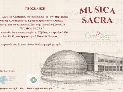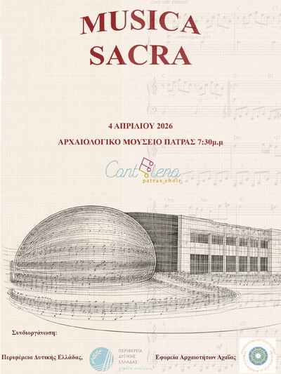 Μουσική εκδήλωση πρόκειται να πραγματοποιηθεί στο Αρχαιολογικό Μουσείο Πατρών, αυτό το Σάββατο 4 Απριλίου 2026 και ώρα 19:30.