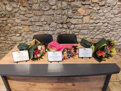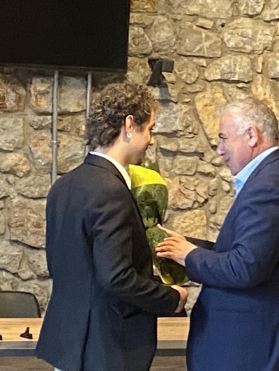 Τα βραβεία απένειμαν η σύζυγος του αείμνηστου Δημήτρη Καλογερόπουλου, ο υιός του Κωνσταντίνος Καλογερόπουλος και ο Δήμαρχος Αιγιαλείας κ. Παναγιώτης Ανδριόπουλος.